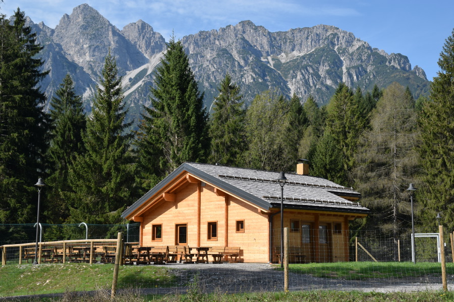 All'area Faunistica di Forni di Sopra si accede attraverso il fabbricato adibito a ingresso/biglietteria, bar, servizi igienici. L'edificio è stato costruito dall'azienda Legnolandia secondo le caratteristiche tipiche dell’edilizia locale: struttura in legno, copertura in scandole di legno, serramenti in legno. Questa bio-costruzione è stata costruita con il coinvolgimento della "Filiera Corta per la valorizzazione dell'Abete Bianco certificato PEFC", è indipendente dal punto di vista energetico grazie ad una elevata qualità dell’isolamento termico, una caldaia a biomassa ed un impianto fotovoltaico grazie al quale sarà possibile alimentare anche la rete di illuminazione pubblica del parcheggio attiguo all’area. Il legname utilizzato è stato ricavato a km. "zero" da foreste a prelievo controllato un valore aggiunto per l'ambiente.